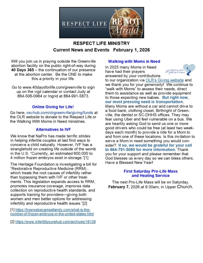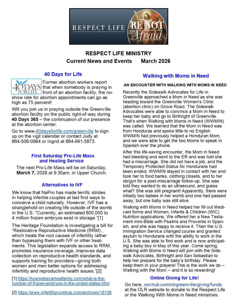 Increase membership of the OLR Respect Life Committee