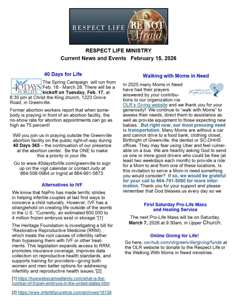 All across the Upstate, hundreds of people are courageously standing up to protect human life. The time is NOW – this is our chance to stand up for the unborn, the sick, the poor, and the most vulnerable among us!